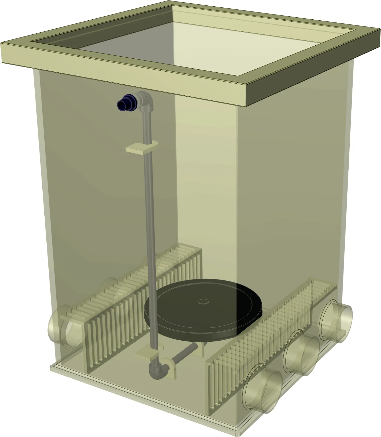 Geïntegreerde Beluchting: De kamer is voorbereid op beluchting, essentieel voor een 'Moving Bed' opstelling. De constante beweging van het medium zorgt voor een optimale zuurstofoverdracht en voorkomt dode hoeken in het filter.